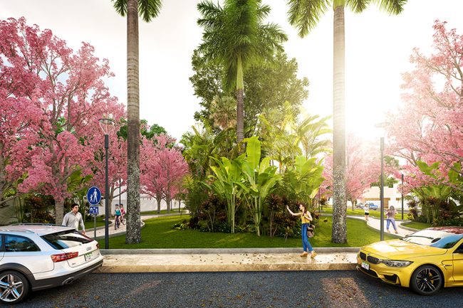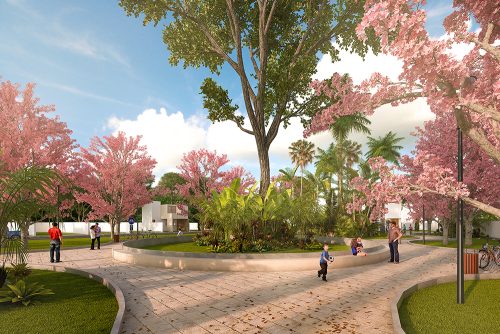 La arquitectura del proyecto, realizada por las arquitectas Zahia Charruf Semerena y Karen Várguez Riegos de Desarrollos Ecopsa, incluye una entrada distintiva, además de amplia vialidad con vías de baja velocidad y ágiles accesos rodeados de la campiña yucateca.
